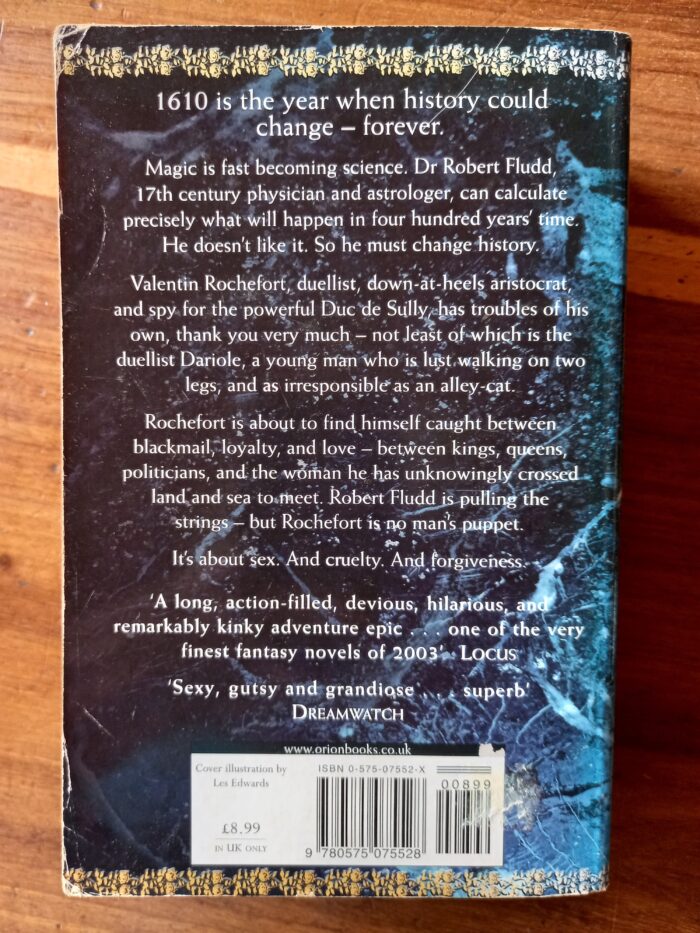 A sweeping, picaresque historical novel about two dueling swordsmen and the plot to kill a king in Renaissance Europe. Continental Europe is briefly at peace after years of war, but Henri IV of France is planning to invade the German principalities. In England, only 5 years earlier, conspirators nearly succeeded in blowing up King James I and his Parliament. The seeds of the English Civil War and the Thirty Years War are visibly being sown, and the possibility for both enlightenment and disaster abounds. But Valentin Rochefort, duellist, down-at-heels aristocrat and spy for the Duc de Sully, France’s powerful finance minister, could care less. Until he is drawn into the glittering palaces, bawdy back streets and stunning theatrics of Renaissance France and Shakespearian London in a deadly plot to both kill King James I and to save him. Determined to save his liege Sully, Rochefort’s journey will take him as far away as the distant Nippons, and as close as the truths of his own heart. This swordsman without a conscience is about to find himself caught between loyalty, love, and blackmail, between kings, queens, politicians and Rosicrucians—and the woman he has, unknowingly, crossed land and sea to meet.