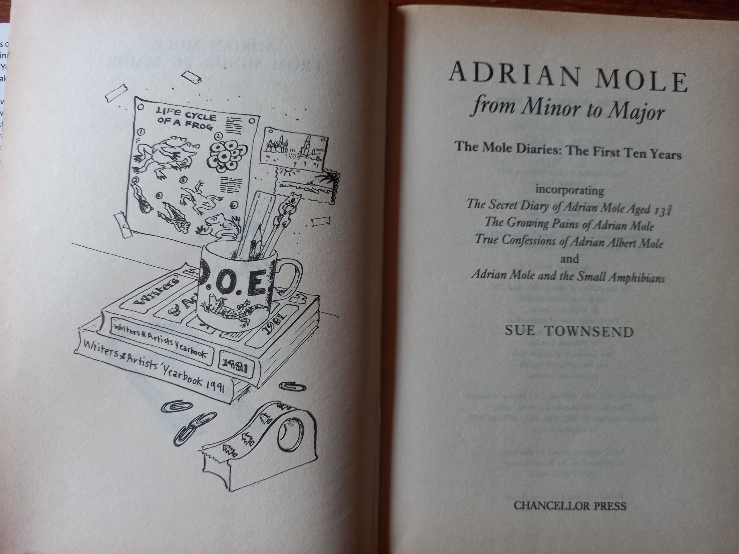 Adrian Mole: From Minor to Major brings together the three bestselling volumes of Adrian Mole’s diaries for the 1980s – The Secret Diary of Adrian Mole Aged 13 3/4, The Growing Pains of Adrian Albert Mole and True Confessions of Adrian Albert Mole – with Adrian’s previously unpublished diaries for 1989 and 1990.