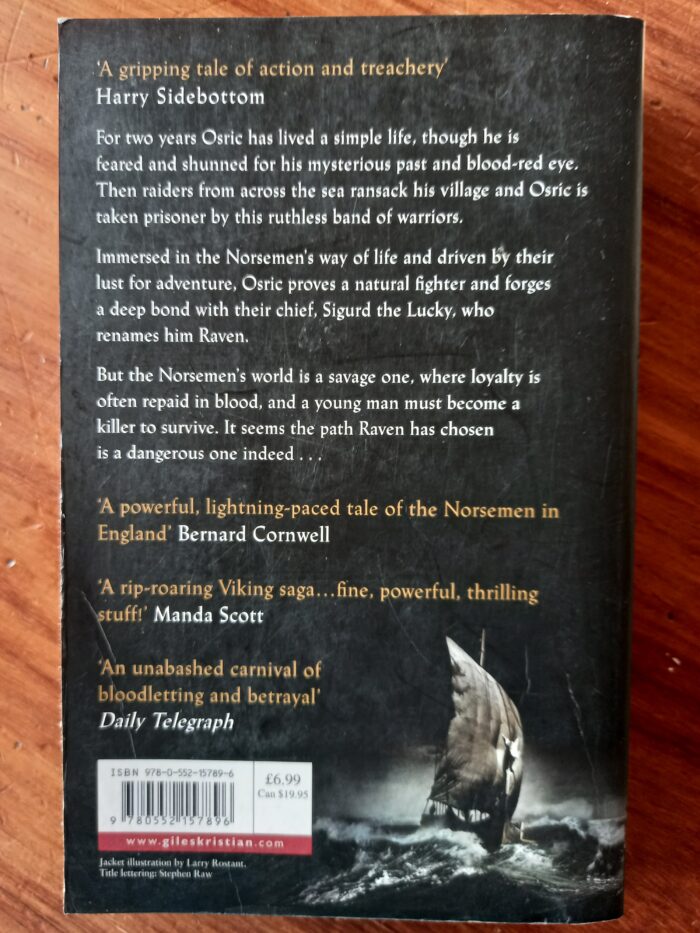 Immersed in the Norsemen’s world and driven by their lust for adventure, Osric proves a natural warrior and forges a blood bond with Sigurd, who renames him Raven. But the Norsemen’s world is a savage one, where loyalty is often repaid in blood and where a young man must become a killer to survive. When the Fellowship faces annihilation from ealdorman Ealdred of Wessex, Raven chooses a bloody and dangerous path, accepting the mission of raiding deep into hostile lands to steal a holy book from Coenwolf, King of Mercia. There he will find much more than the Holy Gospels of St Jerome. He will find Cynethryth, an English girl with a soul to match his own. And he will find betrayal at the hands of cruel men, some of whom he regarded as friends…