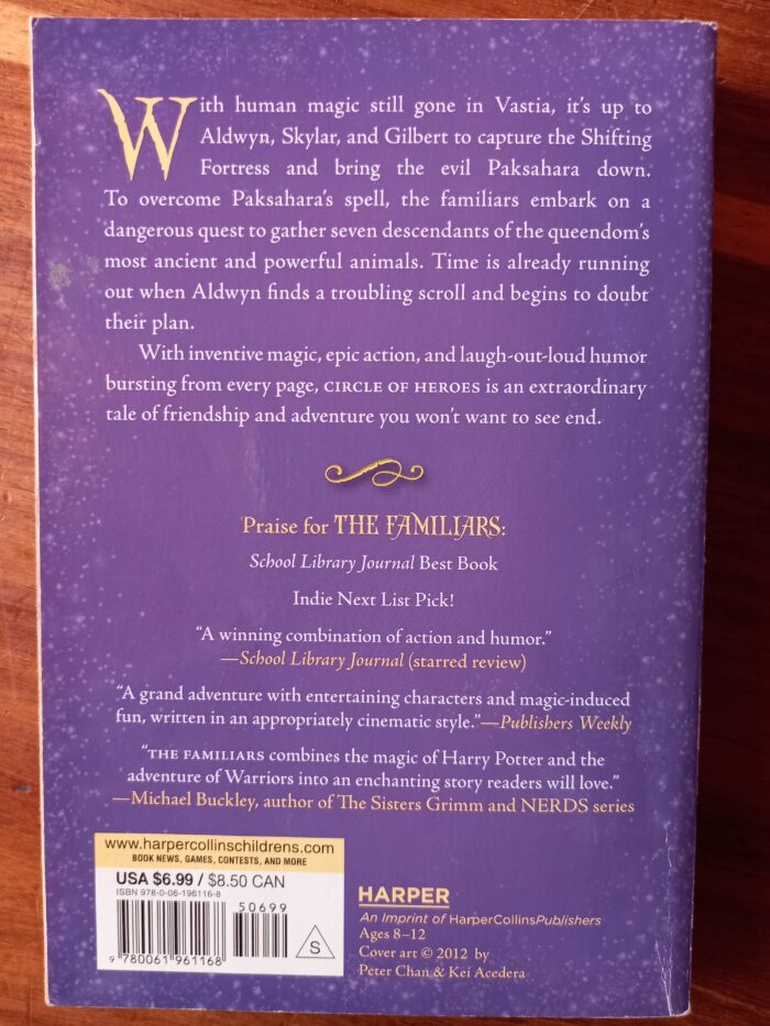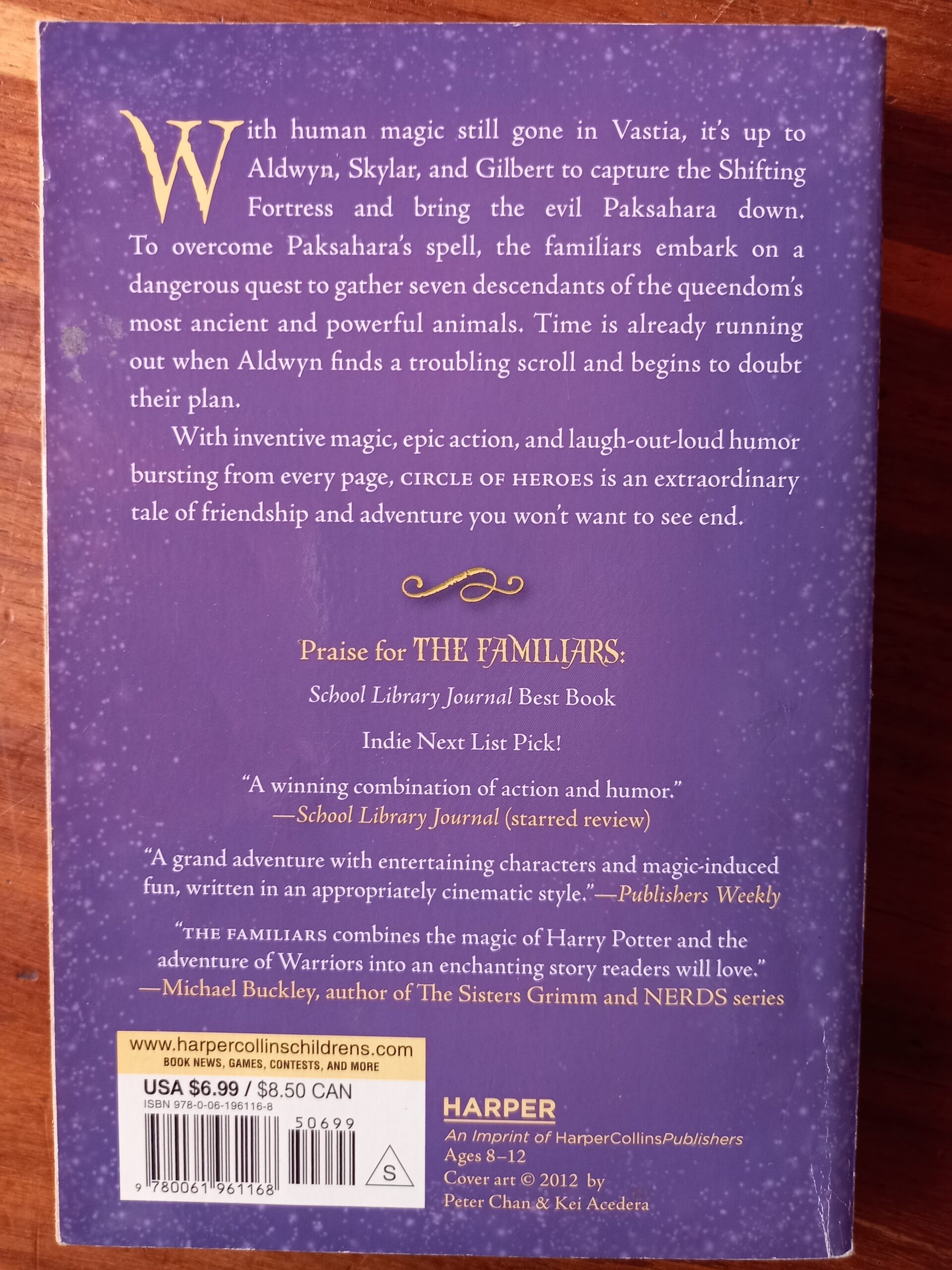 In Circle of Heroes , the third book of The Familiars series for middle-grade readers, Paksahara and her undead animal army control the Shifting Fortress. Aldwyn and his friends have to recapture it to return magic to the queendom of Vastia.