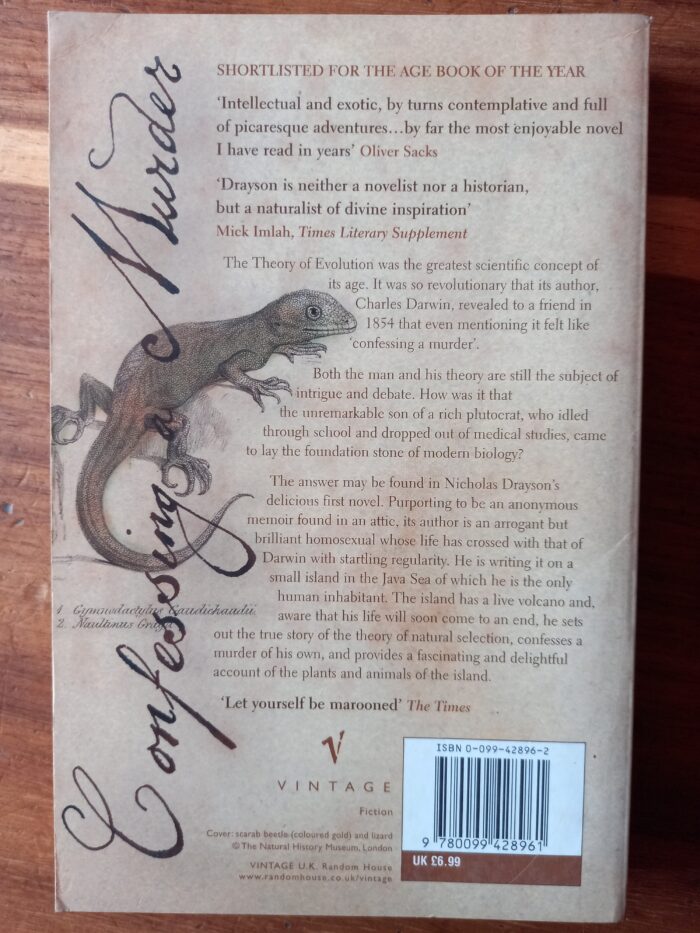 Purporting to be an anonymous memoir found in an attic, its author is an arrogant but brilliant homosexual whose life has crossed with that of Darwin with startling regularity. He is writing it on a small island in the Java Sea of which he is the only human inhabitant. The island has a live volcano and, aware that his life will soon come to an end, he sets out the true story of the theory of natural selection, confesses a murder of his own, and provides a fascinating and delightful account of the plants and animals of the now-vanished island. Peaceful gadzocks and bloodthirsty mistletoes, jumping cucumbers and bat-eating spiders, and most prized of all – the Golden Scarab.