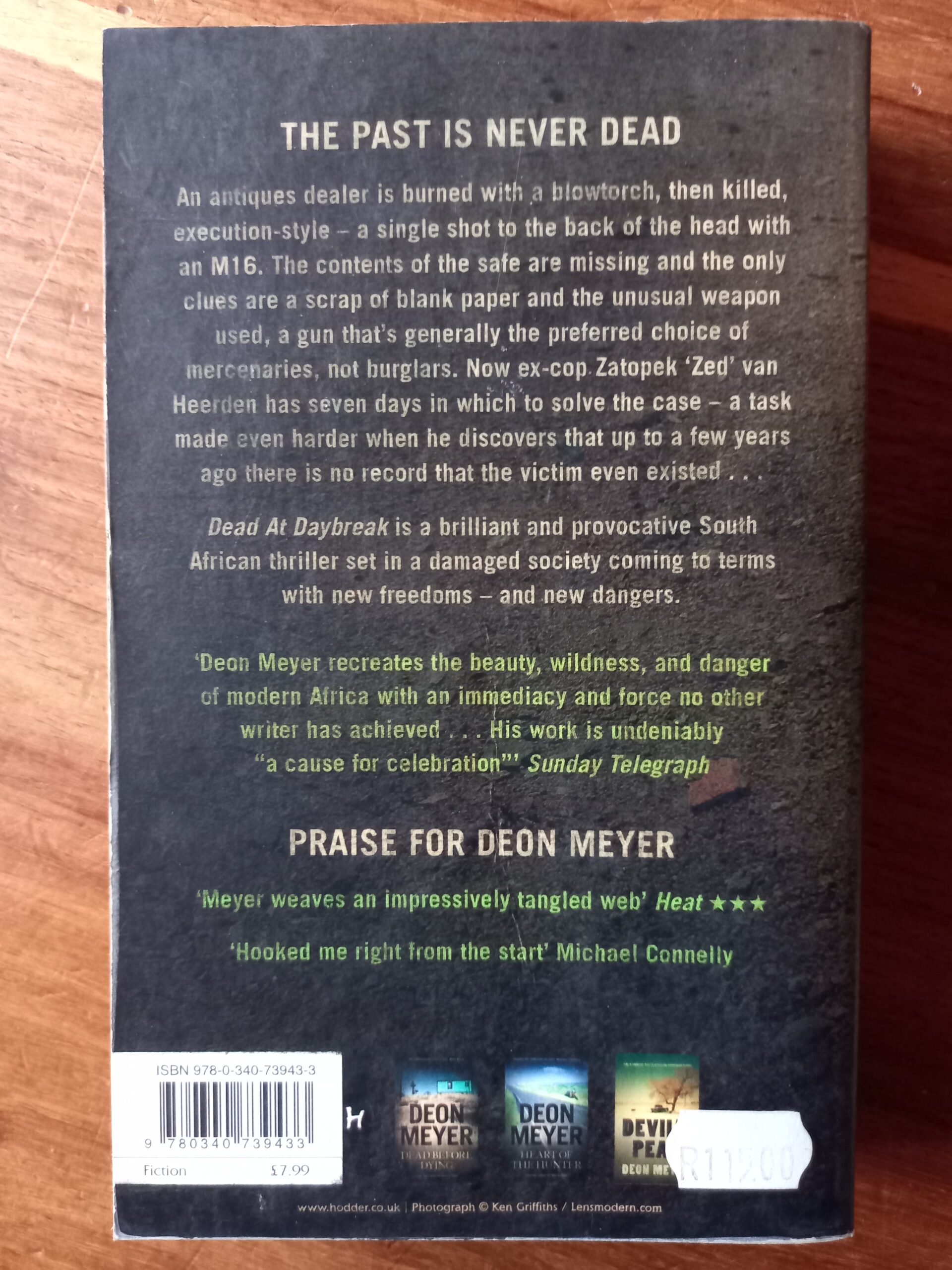 Who tortured and killed Smit, and who was Smit in the first place? Not the man whose papers he carries, that much is certain. Zed can never be sure of the loyalties of the people with whom he is dealing–his own past reputation ensures that–and he soon finds himself uncovering secrets that the security services of many countries would like left alone.