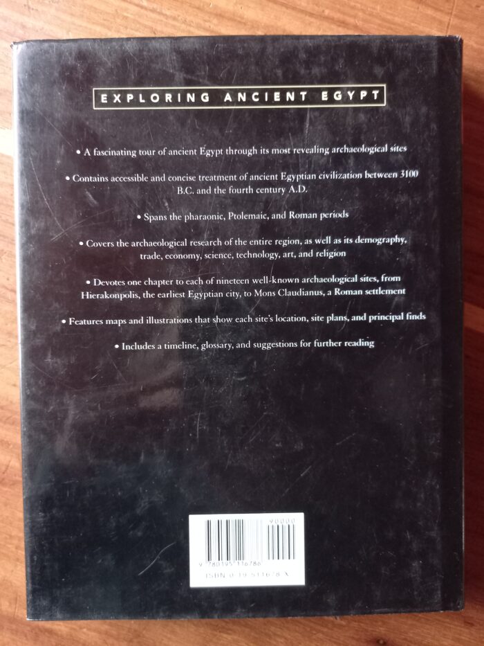 Each of twenty chapters treats a particular site, reflecting a variety of site types (pyramids, rock tombs, temples, and most of the major settlements such as el-Amarna and Alexandria) and offering a balance between daily life, religion, and funerary practices. Each site-chapter features a map