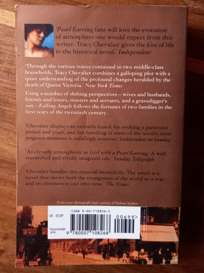Told through a variety of shifting perspectives- wives and husbands, friends and lovers, masters and their servants, and a gravedigger’s son- Falling Angels follows the fortunes of two families in the emerging years of the twentieth century.