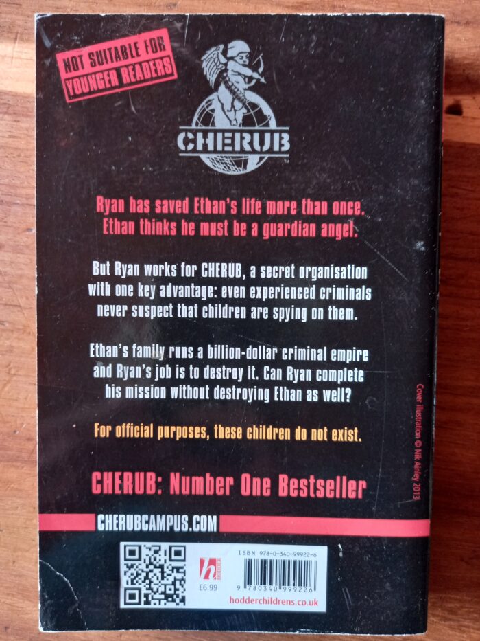 Ryan has saved Ethan’s life more than once. Ethan thinks he must be a guardian angel. But Ryan works for CHERUB, a secret organisation with one key advantage: even experienced criminals never suspect that children are spying on them. Ethan’s family runs a billion-dollar criminal empire and Ryan’s job is to destroy it. Can Ryan complete his mission without destroying Ethan as well?