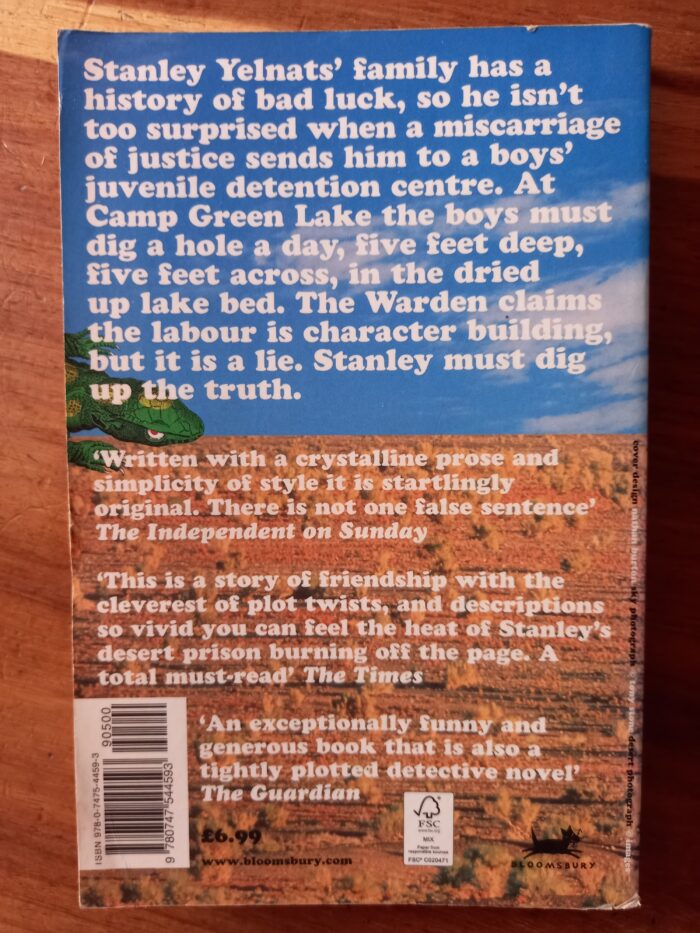 Stanley Yelnats’ family has a history of bad luck, so he isn’t too surprised when a miscarriage of justice sends him to a boys’ juvenile detention centre. At Camp Green Lake the boys must dig a hole a day, five feet deep, five feet across, in the dried up lake bed. The Warden claims the labour is character building, but it is a lie. Stanley must dig up the truth.