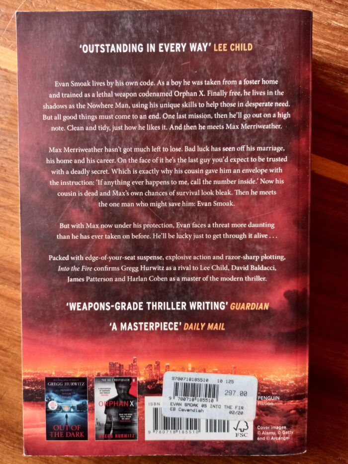 With mixed feelings, Evan takes on this mission, easily finding the men who are after Max and executing a plan to keep him safe. But it isn’t as obvious as it seems—and Evan finds himself enmeshed in one of the most challenging missions of his life, one that he can’t survive on his own. With the help of Joey Morales, a genius-level hacker and the last Orphan recruited into the Program, and the brilliant, off-the-books gunsmith, Tommy Stojack, Orphan X once more heads… Into the Fire.