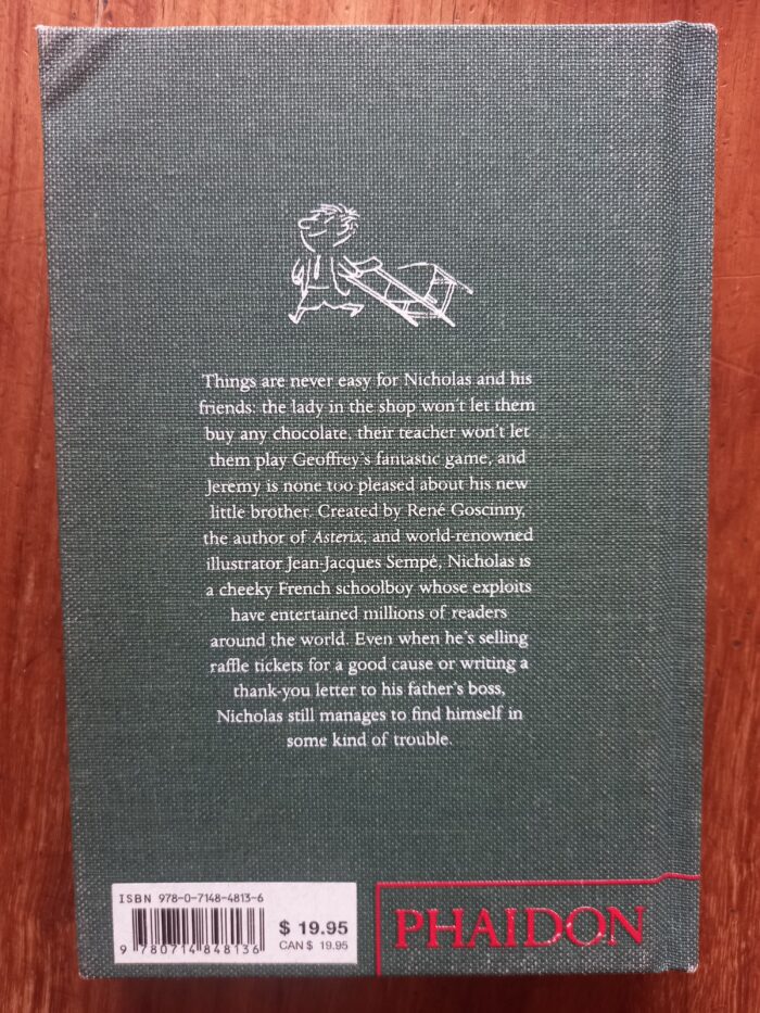 Things are never easy for Nicholas: In this fifth collection of classic stories about the cheeky French schoolboy and his gang, their teacher Old Spuds won’t let them play Geoffrey’s fantastic new game, the lady in the candy story won’t let them buy a chocolate bar, and Jeremy is none too pleased about his new baby brother.