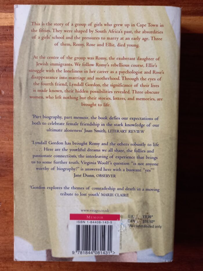 This intimate and moving memoir is the story of Rosie, Ellie, and Romy—her closest friends from childhood until their early deaths. Daughters of Jewish immigrants, these girls grew into adulthood together, shaped by their parents’ and grandparents’ Eastern European heritages, the stifling atmosphere of their proper girls’ school, South Africa’s politics, and the intense pressure within their bourgeois milieu for early marriage. Though miles distanced them as they grew older and went off to New York, Oxford, and Paris, their bonds of friendship remained strong, separated only by their untimely deaths.
