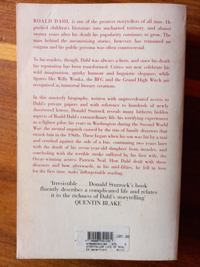 In this masterly biography, Donald Sturrock reveals many hitherto hidden aspects of Roald Dahl’s: his terrifying experiences as a fighter pilot; the mental anguish caused by the death of his seven-year-old daughter; his work for military intelligence at the end of the war and more.