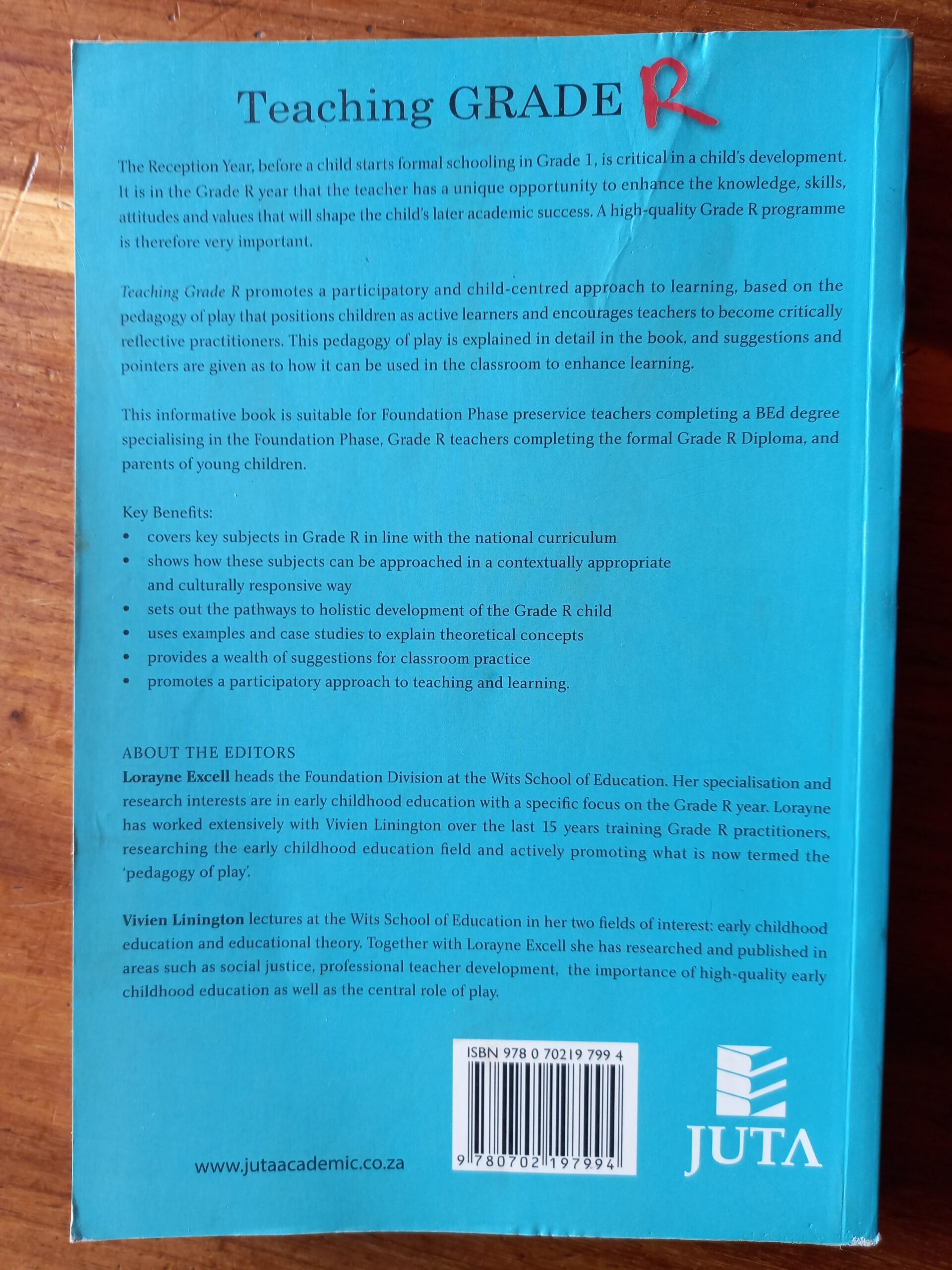 Teaching Grade R promotes a participatory and child-centred approach to learning, based on the pedagogy of play that positions children as active learners and encourages teachers to become critically reflective practitioners. This pedagogy of play is explained in detail in the book, and suggestions and pointers are given as to how it can be used in the classroom to enhance learning.