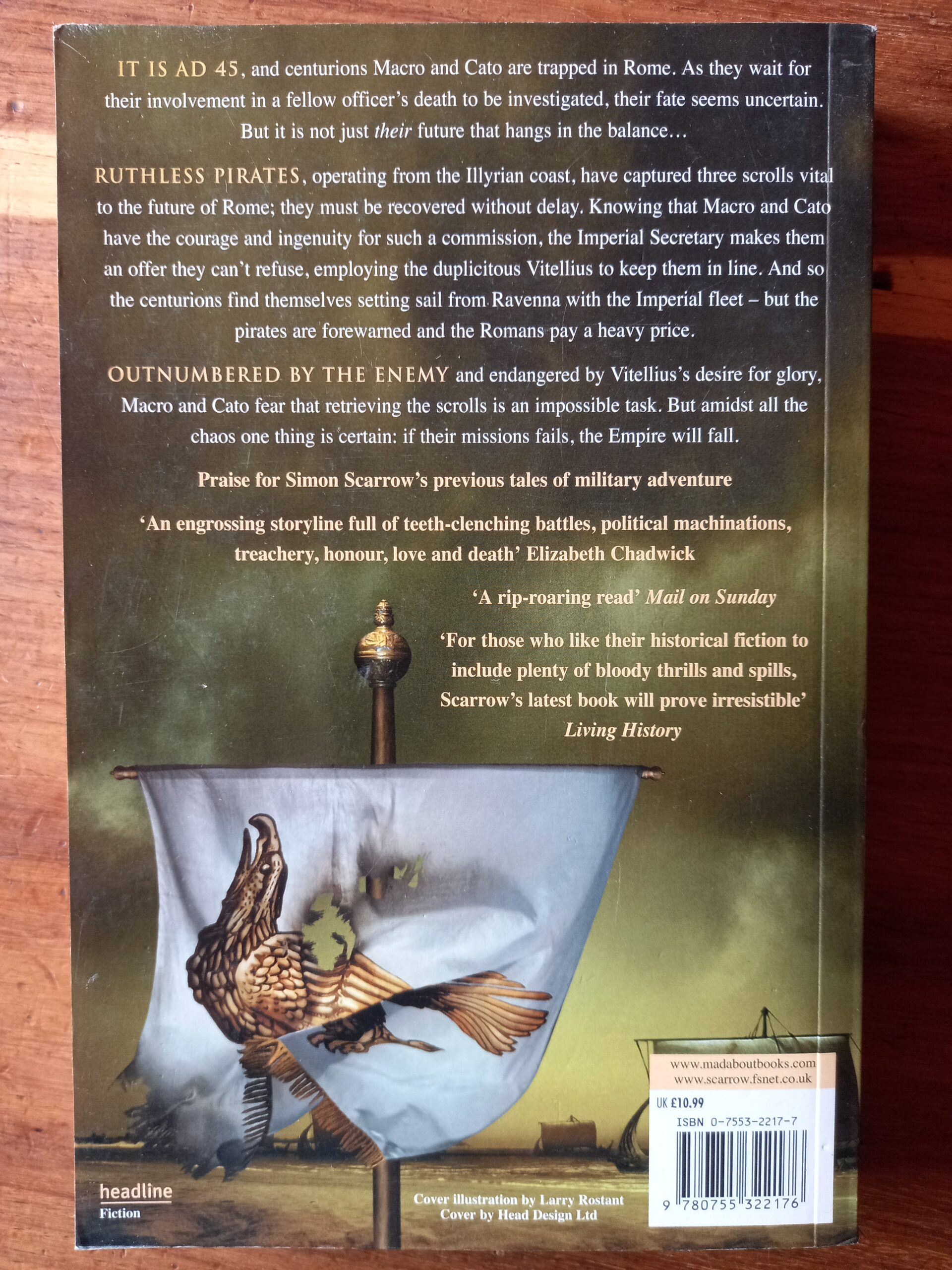 It is spring 45 AD and Centurions Macro and Cato, dismissed from the Second Legion in Britain, are trapped in Rome, waiting for their involvement in the death of a fellow officer to be investigated. It is then that the imperial secretary, the devious Narcissus, makes them an offer they can’t to rescue an imperial agent who has been captured by pirates operating from the Illyrian coast. With him were scrolls vital to the safety of the Emperor and the future of Rome. However, Narcissus also sends Vitellius, an old enemy of the two centurions. The three officers set out from Ravenna with the imperial fleet but the pirates are forewarned and the Romans pay a heavy price. Outnumbered by the enemy, surrounded by rumours of treachery and endangered by Vitellius’ desire to redeem himself, Centurions Macro and Cato must find the pirate base to avert a disaster that could destroy the Emperor.