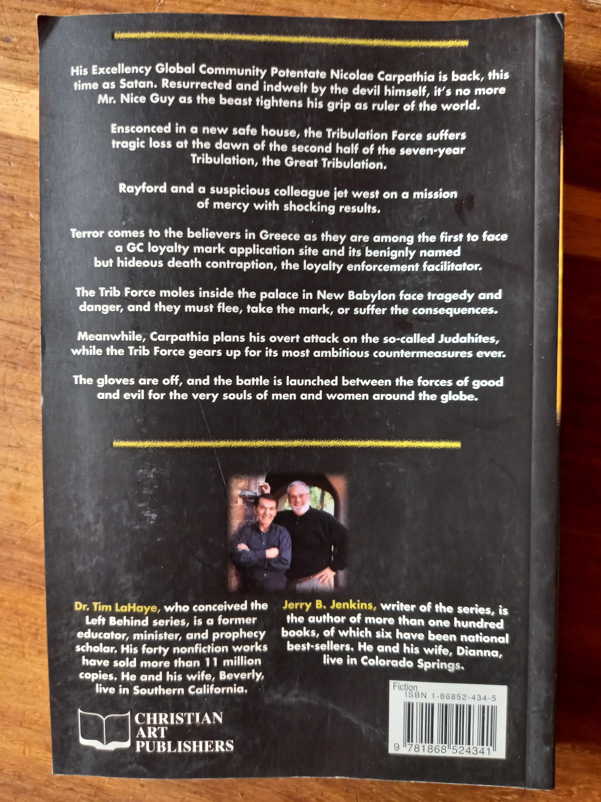 His Excellency Global Community Potentate Nicolae Carpathia has been resurrected and indwelt by Satan himself. He plans to remodel his offices and add two floors to his palace, including a glass ceiling. He also demands that the people of the Global Community worship him. Statues of himself are erected for worship. He introduces Viv Ivins to the senior staff and tells them of the loyalty mark program. The Antichrist declares that every single person on earth must receive his mark of loyalty and worship his image or lose their head to the loyalty enforcement facilitator.