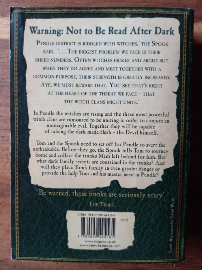 In Pendle the witches are rising and the three most powerful witch clans are rumoured to be uniting in order to conjure an unimaginable evil. Together they will be capable of raising the dark made flesh – the Devil himself. Tom and the Spook need to set off for Pendle to avert the unthinkable.