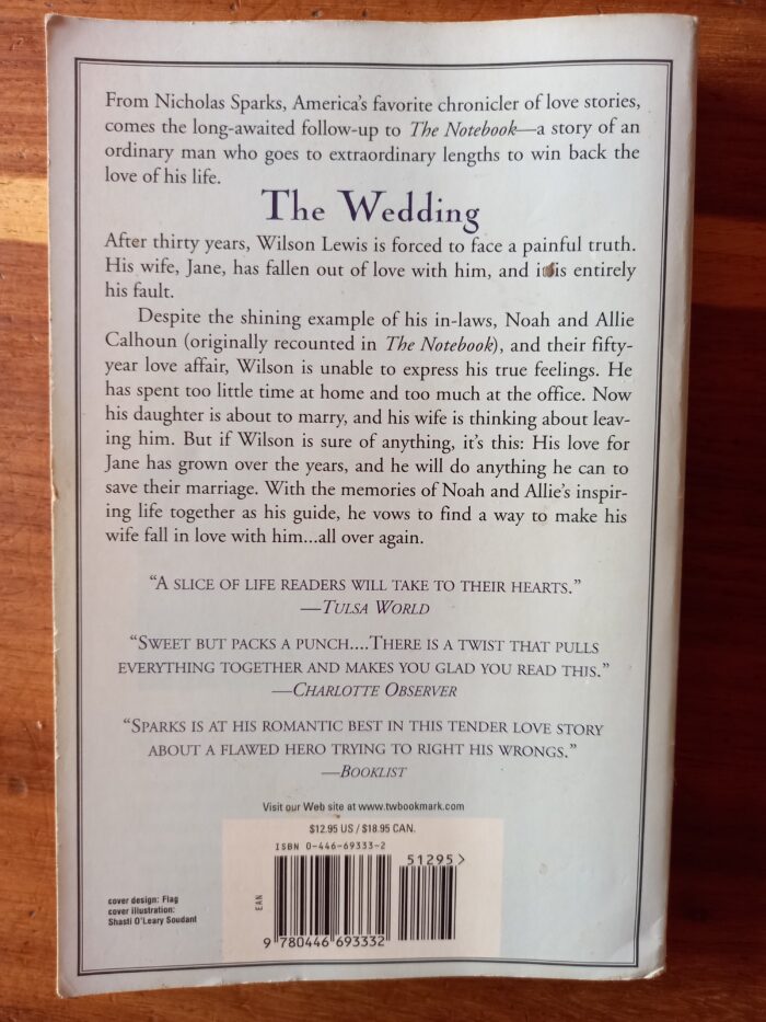 After thirty years of marriage, Wilson Lewis, son-in-law of Allie and Noah Calhoun (of The Notebook), is forced to admit that the romance has gone out of his marriage. Desperate to win back his wife, Jane’s, heart, he must figure out how to make her fall in love with him… again. Despite the shining example of Allie and Noah’s marriage, Wilson is himself a man unable to easily express his emotions. A successful estate attorney, he has provided well for his family, but now, with his daughter’s upcoming wedding, he is forced to face the fact that he and Jane have grown apart and he wonders if she even loves him anymore. Wilson is sure of one thing–his love for his wife has only deepened and intensified over the years. Now, with the memories of his in-laws’ magnificent fifty-year love affair as his guide, Wilson struggles to find his way back into the heart of the woman he adores.
